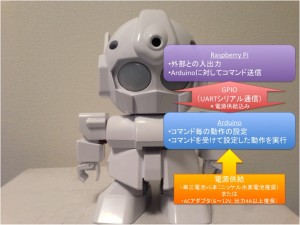 どういう動き(モーション)をさせるかは、全部Arduino側で定義することになります。Raspberry Piは、基本的にはどういう入力に対してどういう動きをさせるかを判断して、Arduinoで定義したモーションを呼び出すように、シリアル通信でコマンド(文字列)を送るだけ。