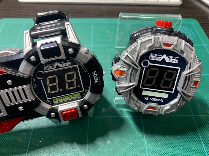 • 認識ピンを取り払ったライドウォッチで外付け強化アイテムを作ることはアイデアとしてあったのですがファイズアクセルというモチーフまで完璧なアイテムに時計機能やセグメントまでそろえていて本当に感服しました