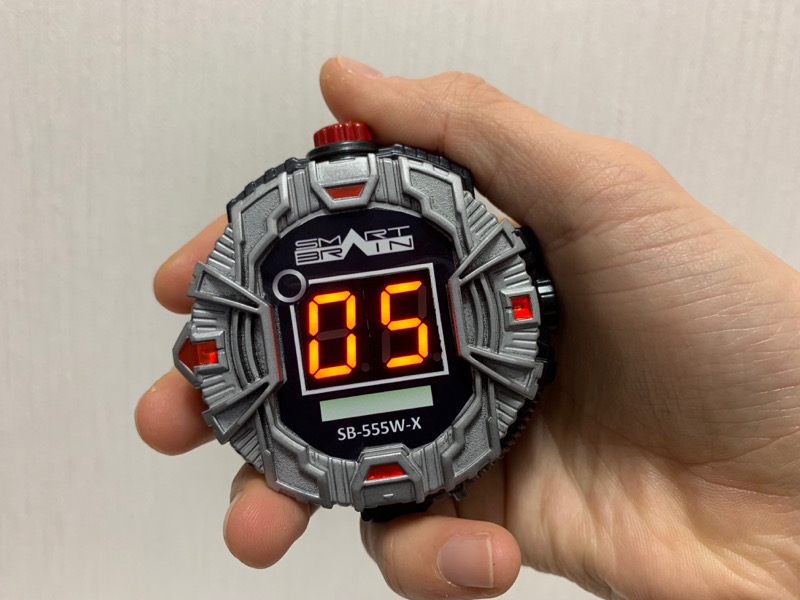 時計機能は元々、『ジオウは時計がモチーフ』ということがわかってから、いつかは実装したいと思っていた機能でした。ただ、普通のライドウォッチは長針や短針、7セグなどの時刻を表現するための手段を持っていなかったので、無理やり入れ込んでも不自然になるかと思い、ずっと保留にしていました。今回、ファイズアクセルという、時計としてより不自然でない(?)ものを題材にすることができましたので、満を持して(?)の搭載になりました。