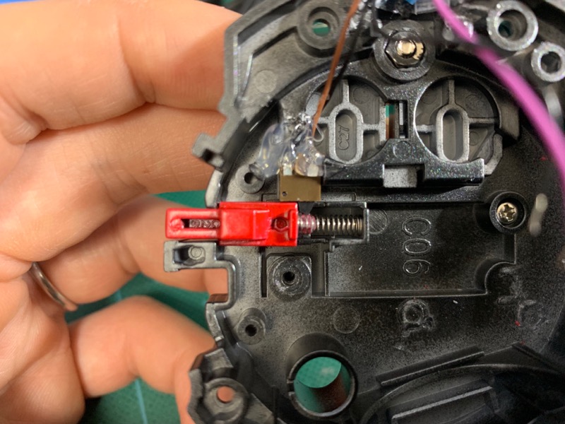 あと、今回食玩版がベースということで、本来機能しない中央スイッチを押せるように改造する必要があったのですが、手元にあった以下のプッシュスイッチで対応しています。