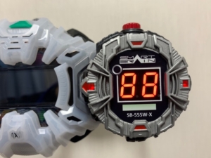 あと地味な特徴として、上部ボタンが認識したライダーの色に変化する、というギミックも追加しています。ボタンがクリアブラック色なので、正面からだとちょっと見にくいですが。