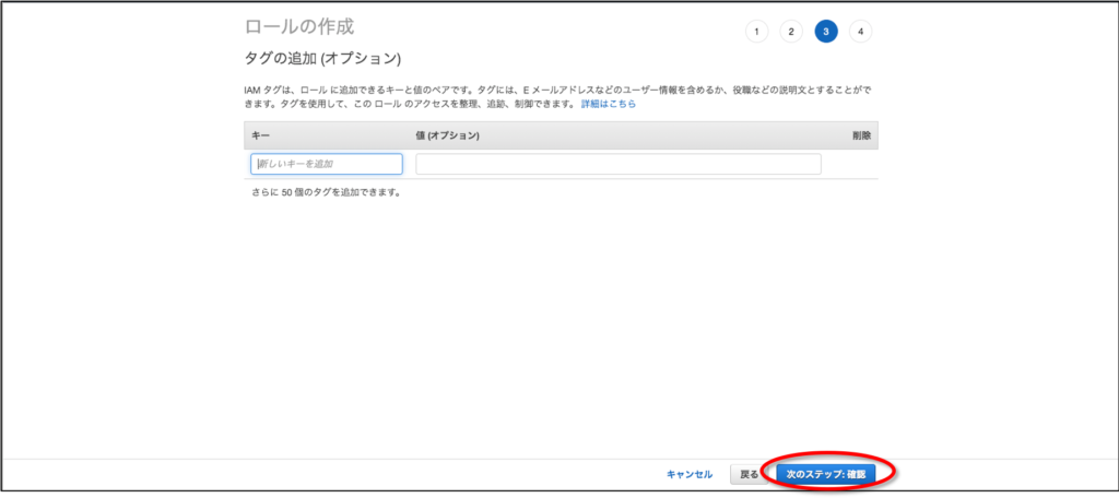 ルールの作成画面に戻ってくるので、必要であればタグを設定して、先に進みます。