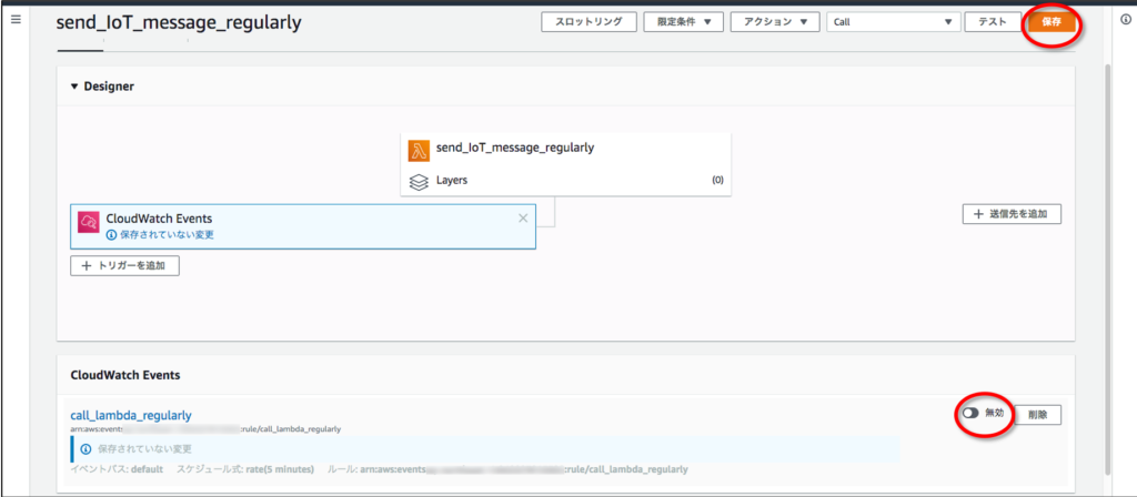 最後に、動作確認が終わったら、CloudWatch Eventsのトリガーを無効化して保存することを忘れずに。これぐらいの量・頻度でのLambdaコールぐらい大したことはないハズですが、塵も積もれば山となる、で費用請求されることになるかもしれませんので。