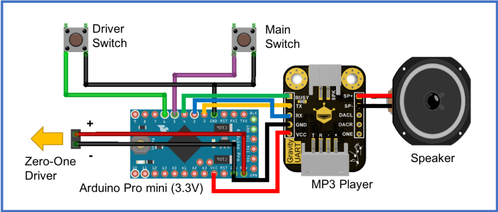 MP3ボイスモジュールは前作プログライズライターから使い始めたものですが、こういう小規模工作にはうってつけです。DFPlayer+マイクロSDカードを買うより安く済みます。コネクタ部分が結構大きくて邪魔になることもありますが、ニッパーで簡単に切り落としてしまえるので問題ありません。