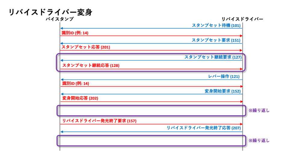 至る所で採用されている赤外線通信が、とにかく一筋縄ではいかない。バイスタンプの認識が、サンダーゲイルで上手くいったかと思えば、ローリングでは上手くいかない。ツーサイドライバーで上手くいったかと思えば、リベラドライバーでは上手くいかない。そんなことが至る所にあり、とにかく通信仕様の読み解きが大変でした。結局、私も未だ完全には理解しきれていません。