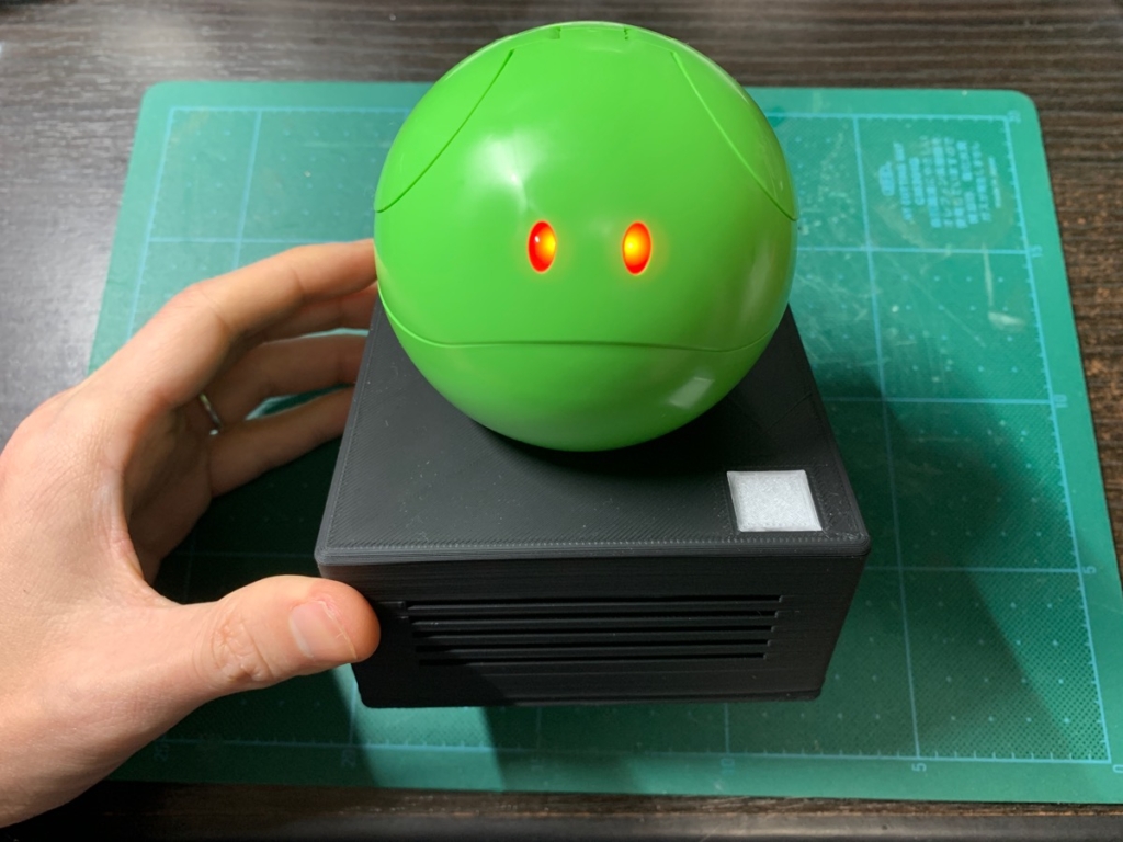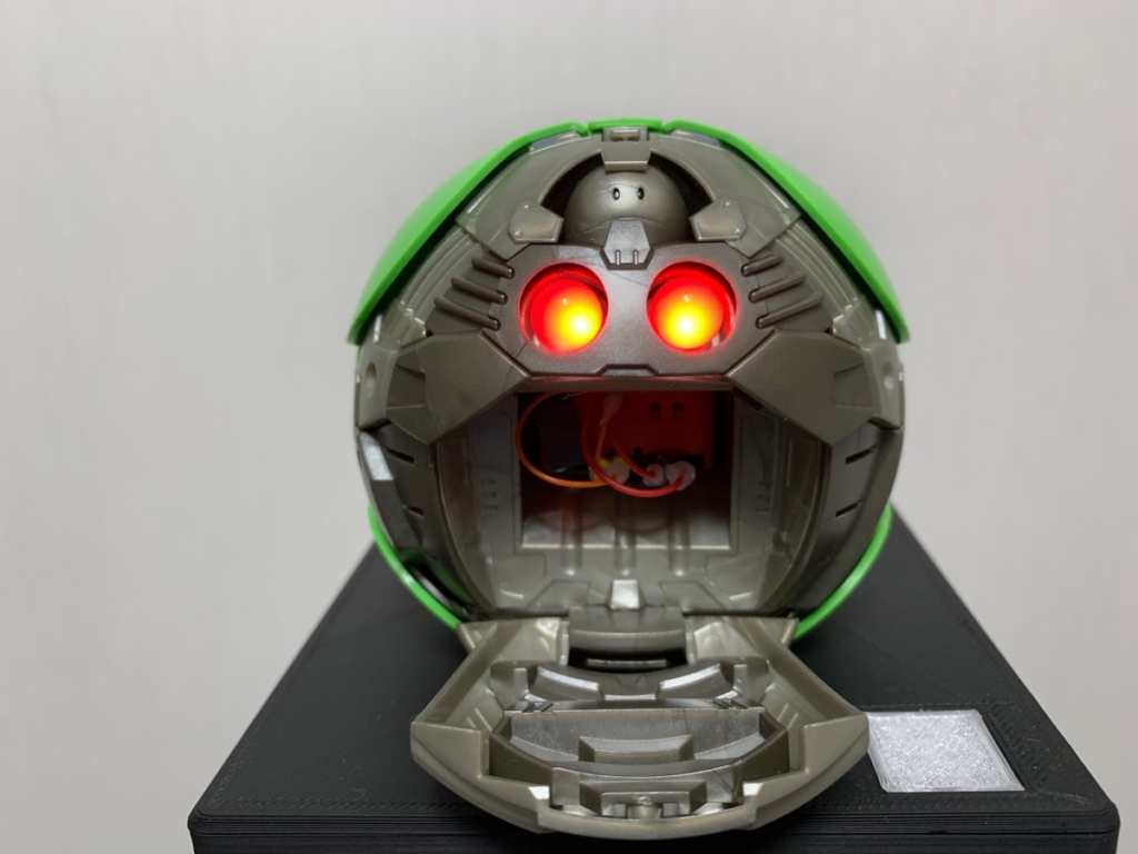 なお、目の色が変わるときには全て、ハロが軽く振動するようになっています。目の色が変わるごとに喋られるとちょっと喋りすぎな気がするのと、かといって、目の色の変化だけだと空気の状態変化に気づきにくいので、振動することによって、あまり気にならない程度に能動的に状態を教えてくれるようにしてみました。
